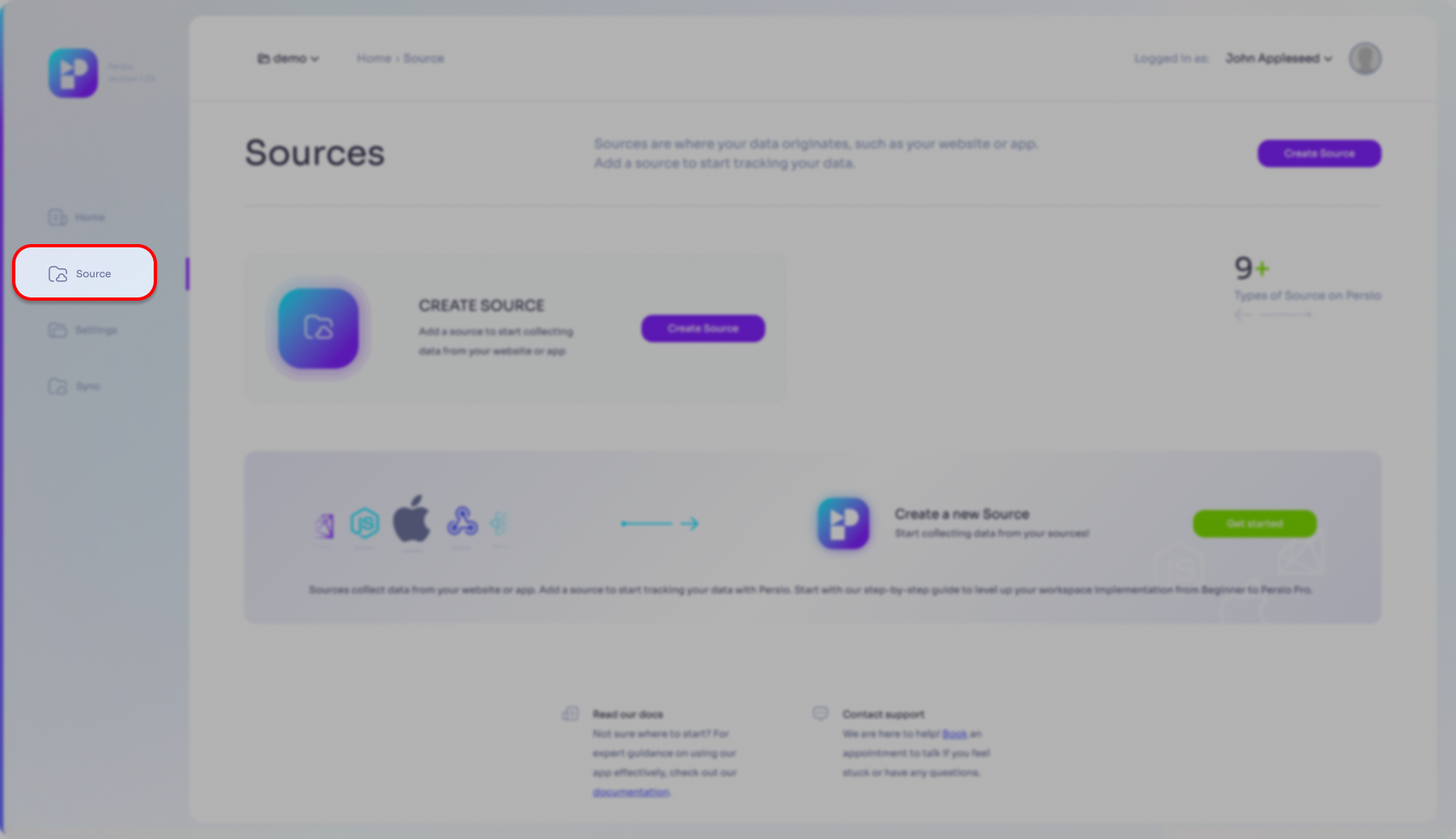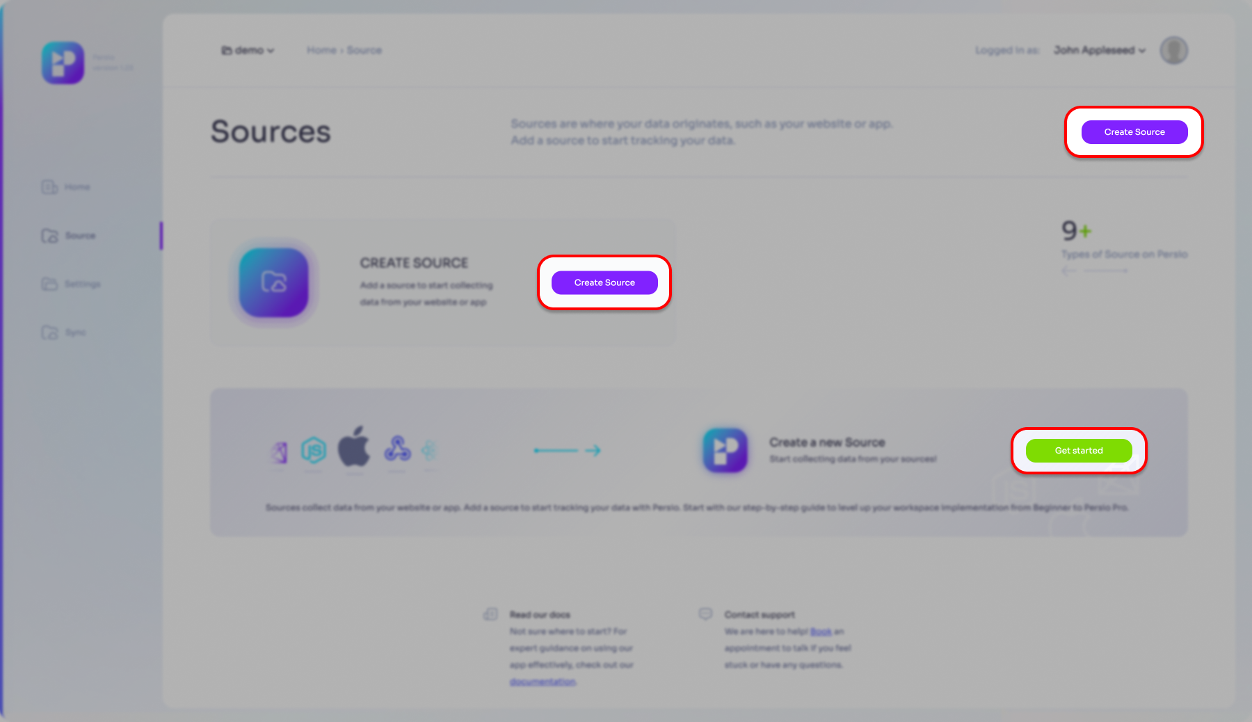 Click one of the 'Create Source' buttons or the 'Get started' button
