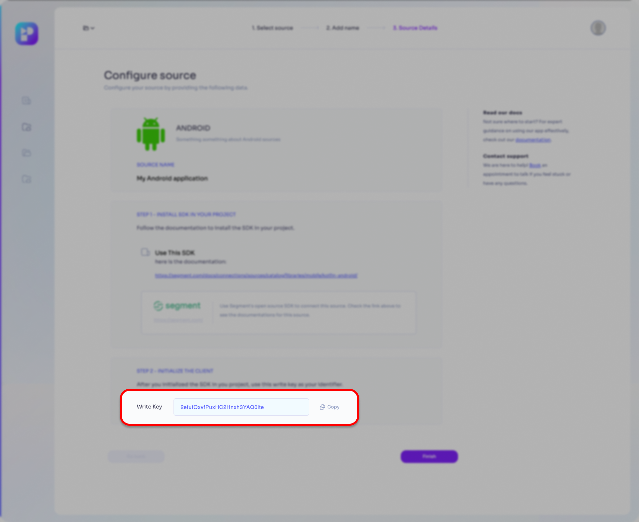 WRITE_KEYwill be generated. This is a very important data for achieving the integration between your application and Persio; you will need to share this key with your application development team.